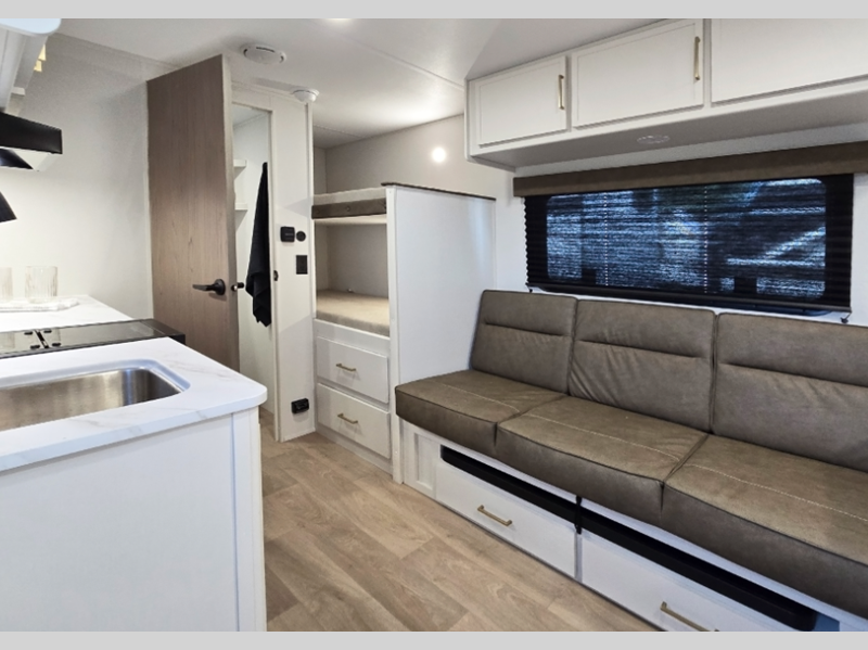 Weighing in at just 1,585 kilograms, the Transcend One 151BH is easy to tow, allowing you to explore a variety of destinations without the hassle of a cumbersome setup. Its lightweight design doesn't compromise on durability or quality, ensuring a reliable and enjoyable travel experience. The thoughtfully designed interior maximizes space and functionality, featuring cozy sleeping arrangements, a well-equipped kitchenette, and ample storage to keep your essentials organized and accessible.