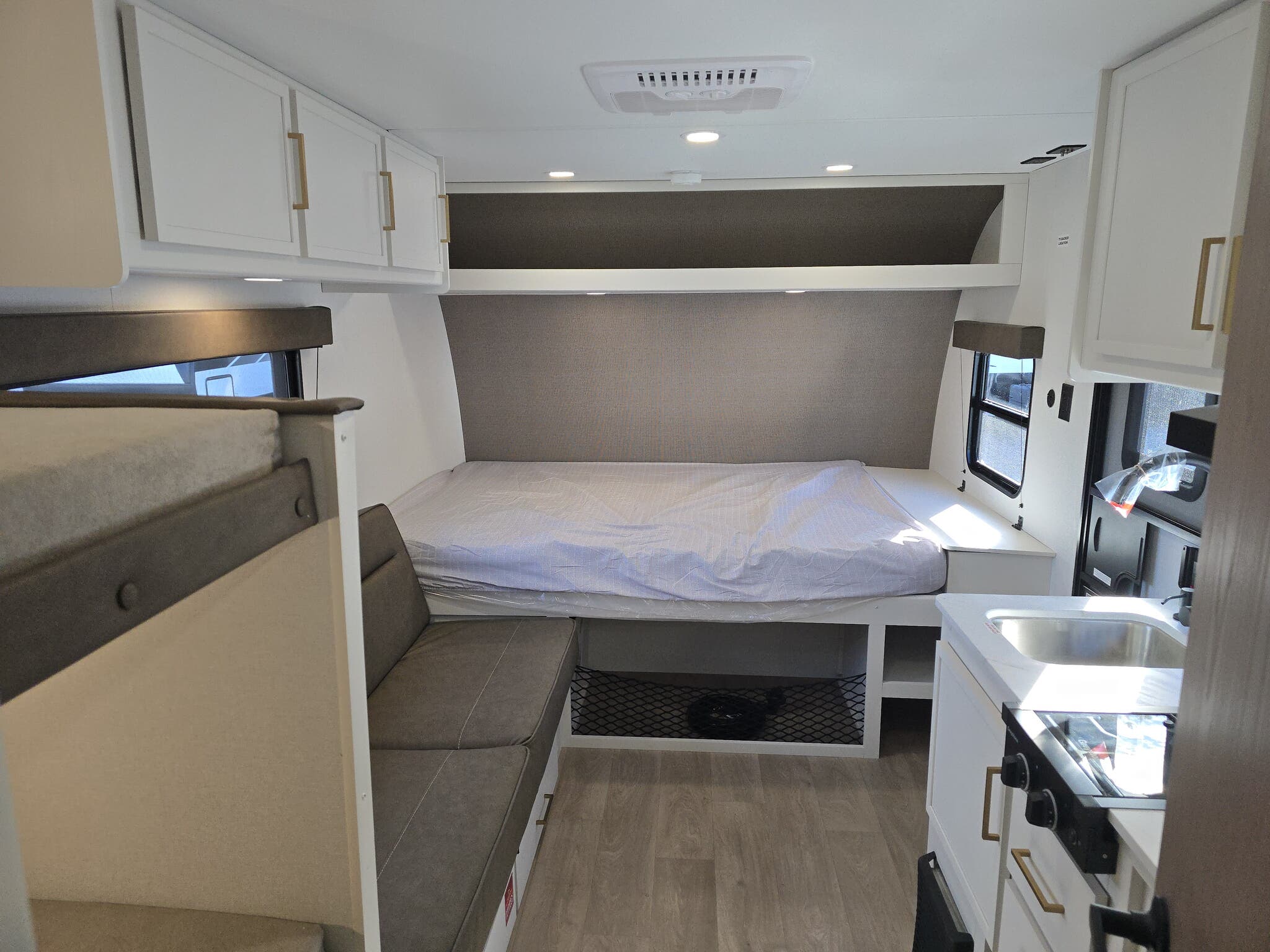 Weighing in at just 2,007 kilograms, this travel trailer is lightweight and easy to tow, making it an ideal choice for a wide range of vehicles. Its aerodynamic design not only enhances fuel efficiency but also ensures a smooth and stable ride, even on winding roads. The interior is thoughtfully designed with modern amenities and high-quality finishes, providing a luxurious retreat after a day of exploration. Enjoy the convenience of a fully equipped kitchen, a comfortable dining area, and ample storage space to keep all your essentials organized and within reach.