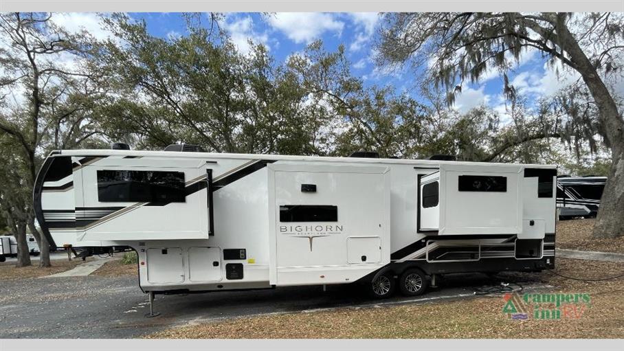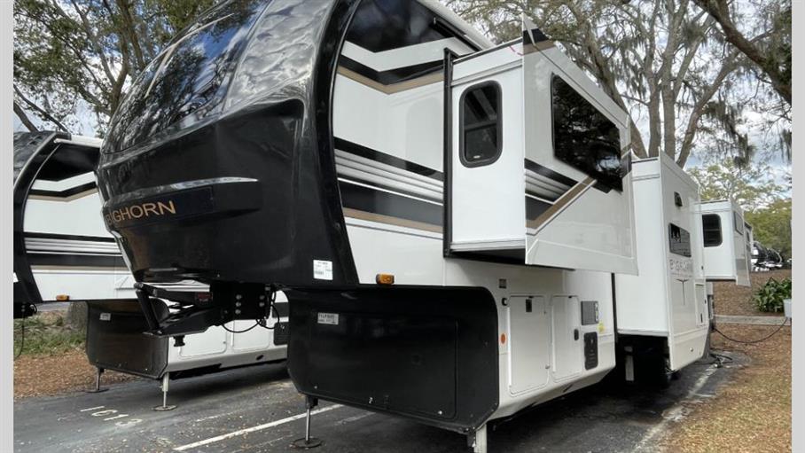 This Bighorn boasts five slide-outs, giving you plenty of room to stretch out and enjoy your surroundings. Whether you're lounging in the living area or cooking up a storm in the kitchen, you'll appreciate the extra space. It comfortably sleeps four, making it ideal for small families or couples who enjoy having a bit of extra room. The RV weighs in at 7,103 kilograms, ensuring a sturdy and stable ride wherever the road takes you.