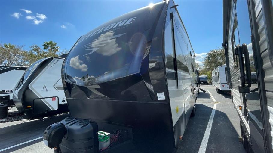 The Cyclone 2214 boasts a thoughtfully designed interior that maximizes space and comfort. The sleeping arrangements are tailored to provide restful nights, featuring a cozy master bed and additional sleeping options for guests. The living area is equipped with modern amenities, including a fully functional kitchenette with state-of-the-art appliances, a dining area, and a comfortable seating arrangement. The bathroom is designed with convenience in mind, offering a shower, toilet, and sink, ensuring you have all the comforts of home while on the road.
