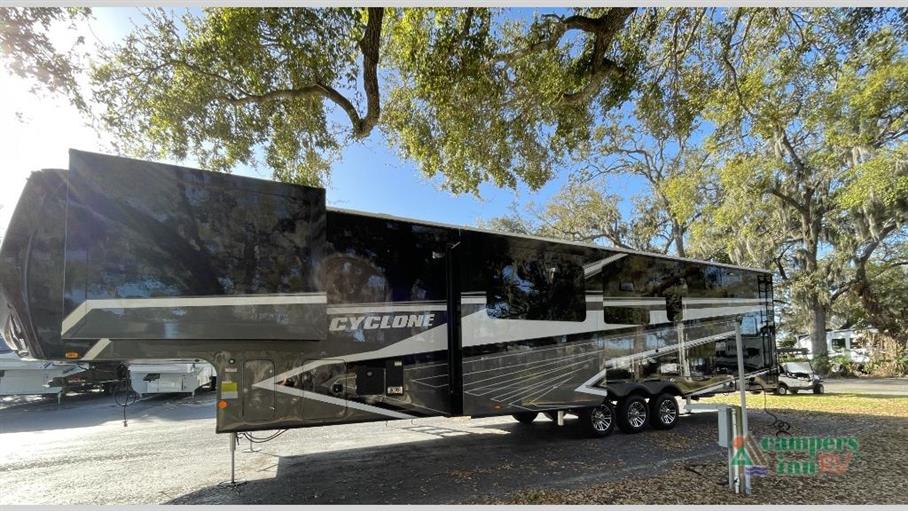Weighing approximately 7,062 kilograms, this Fifth Wheel is built for durability and ease of towing. Its robust construction and high-quality materials ensure a reliable and safe journey, while the sleek exterior design adds a touch of elegance to your travels. Whether you're exploring national parks or setting up camp by the beach, the 2026 Heartland Cyclone 3913 Fifth Wheel is your perfect companion for creating unforgettable memories on the road. Don't miss the opportunity to own this exceptional RV and elevate your travel experiences to new heights.