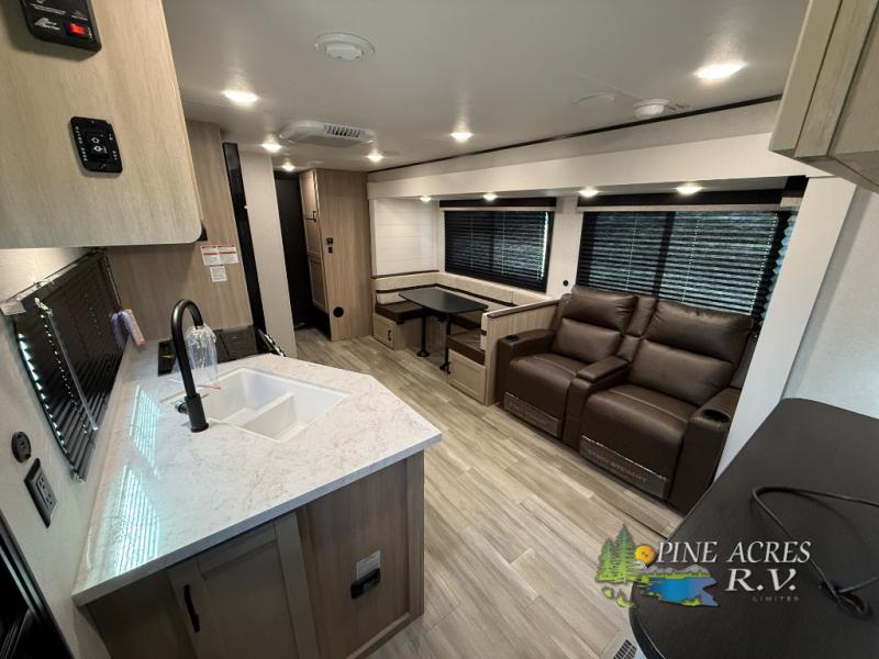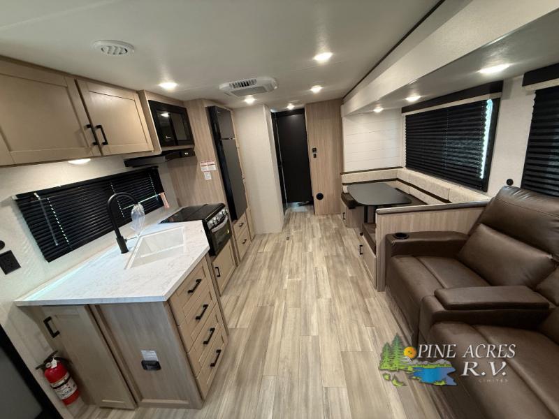 The Heartland Prowler 3202DSB is thoughtfully designed to accommodate up to nine occupants, making it an ideal choice for families or groups seeking a spacious and comfortable travel solution. The inclusion of two slide-outs significantly enhances the interior space, creating a welcoming environment that feels both expansive and cozy. The intelligently designed floor plan ensures that every inch of space is utilized efficiently, offering a harmonious blend of functionality and style.
