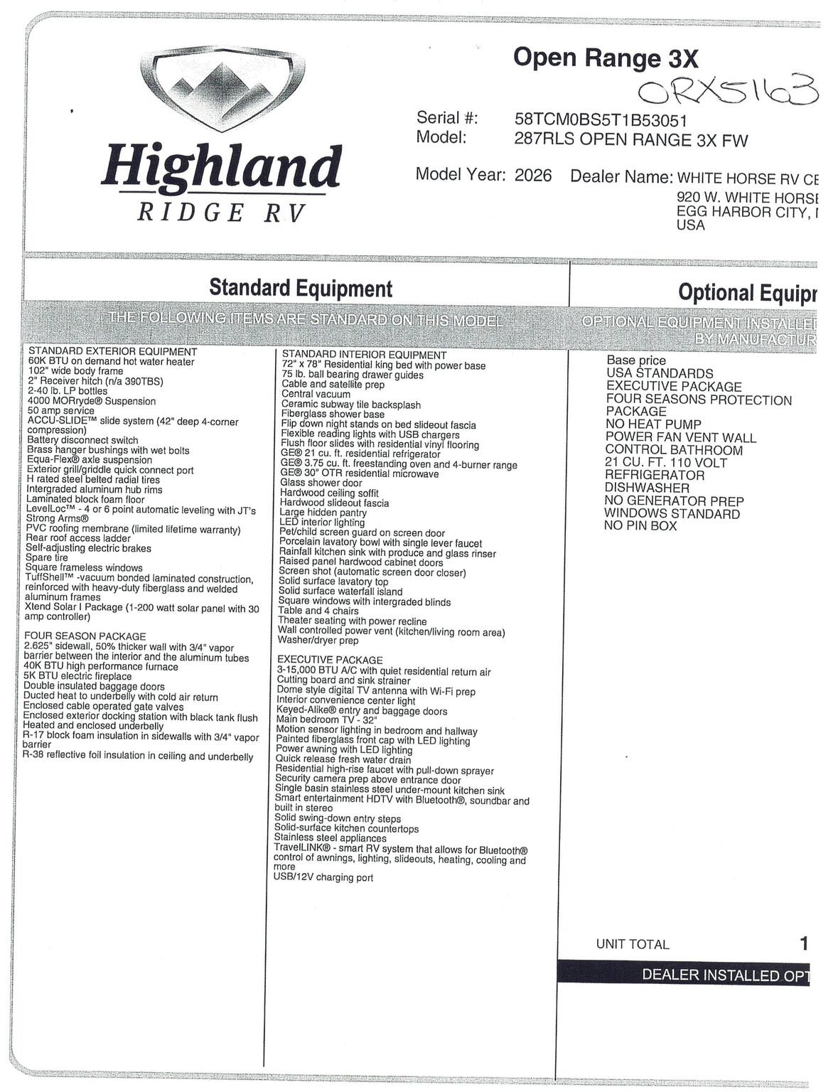 2026 Highland Ridge Open Range 3X 287RLS