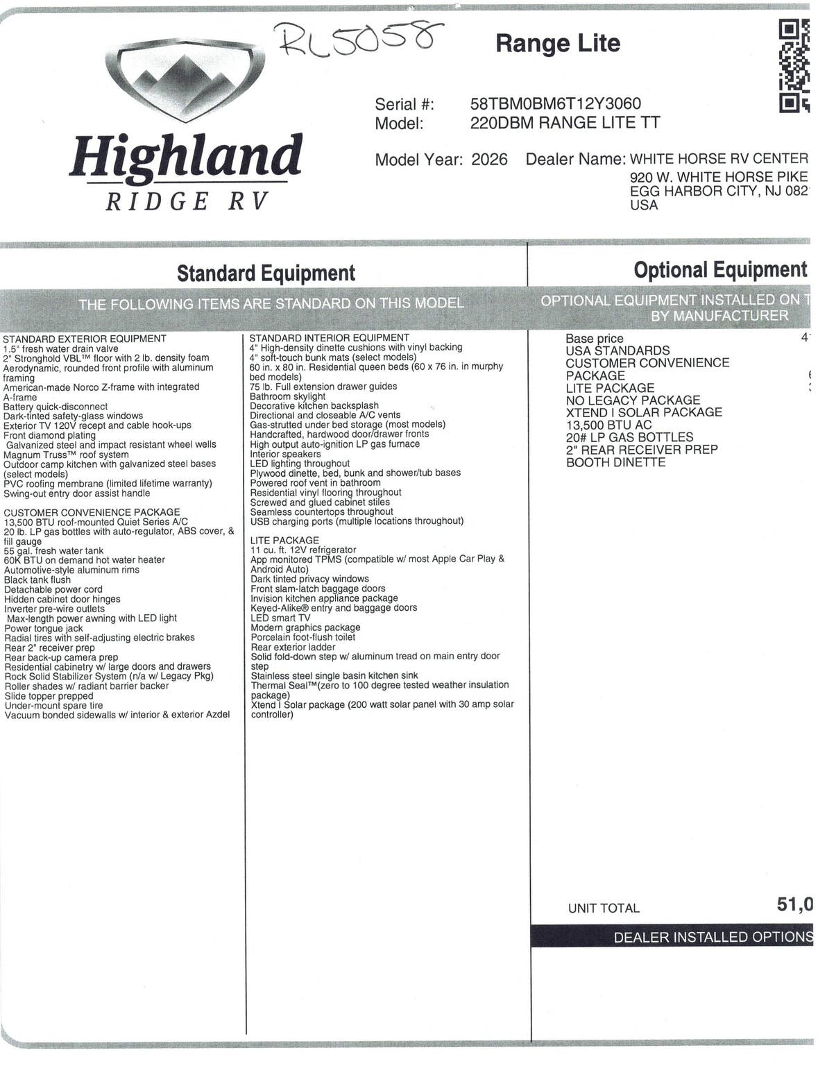 Weighing in at just 3,176 kilograms, the Range Lite 220DBM is lightweight yet robust, making it easy to tow without compromising on durability. Its sleek design and high-quality construction ensure a smooth ride, while the thoughtful layout maximizes space and functionality. Don't miss the opportunity to own this remarkable travel trailer that promises unforgettable memories and endless adventures. Embrace the freedom of the open road with the 2026 Highland Ridge Range Lite 220DBM, where every journey becomes a cherished experience.