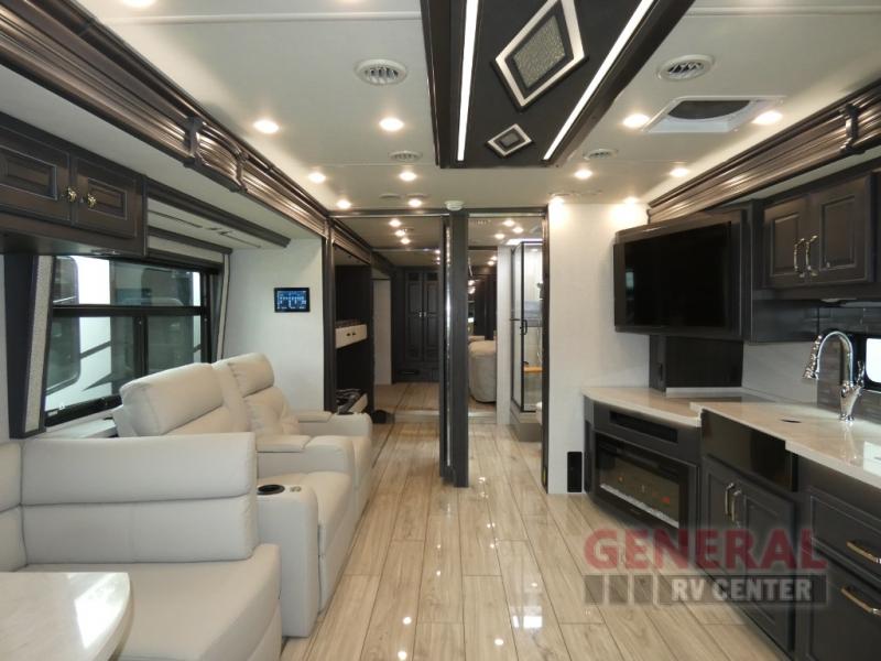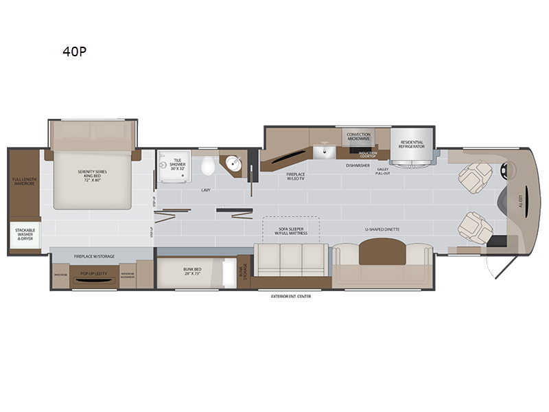 The Armada 40P features three expansive slide-outs, ingeniously designed to maximize interior space and create a welcoming, open atmosphere. Accommodating up to eight sleepers, this RV is perfect for family trips or group adventures. The thoughtfully designed interior includes premium furnishings and state-of-the-art amenities, ensuring that every passenger enjoys a comfortable and restful stay. The well-appointed kitchen, spacious living area, and luxurious sleeping quarters make this motorhome a true home away from home.