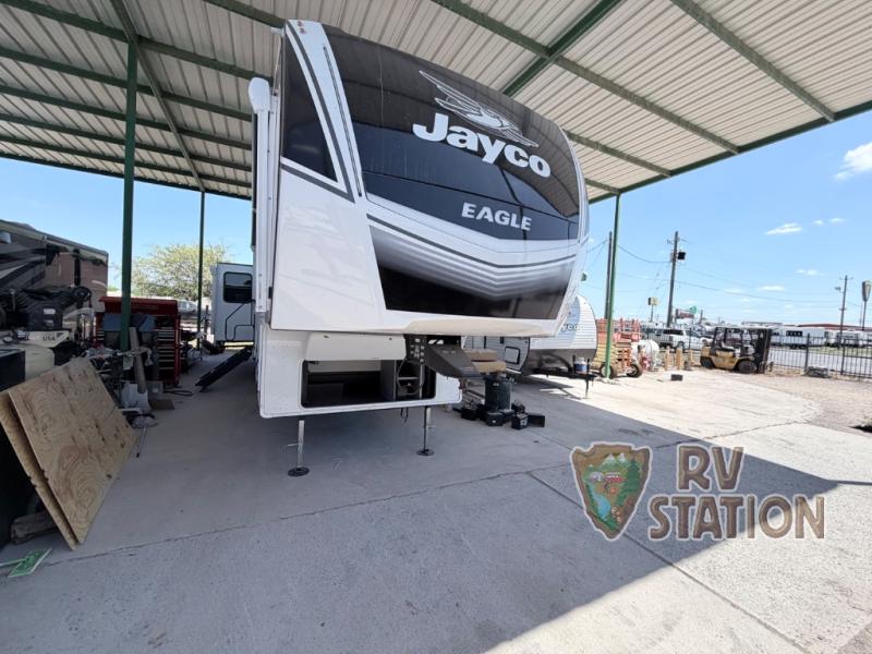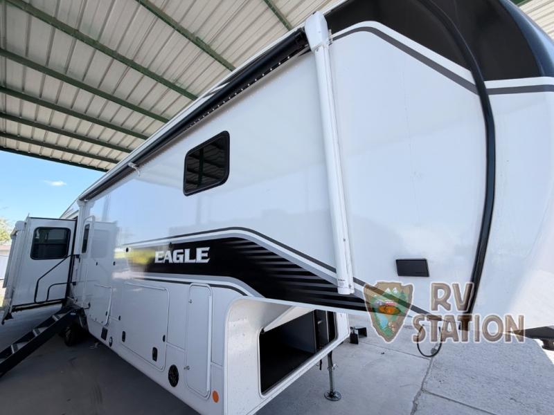 Discover the ultimate in luxury and comfort with the 2026 Jayco Eagle 355MBQS Fifth Wheel, a masterpiece of modern RV design. This stunning vehicle boasts four spacious slide-outs, offering an expansive living area that transforms your travel experience into a home away from home. Measuring an impressive 35 feet in length, the Eagle 355MBQS provides ample space for family and friends, comfortably sleeping up to eight people. Whether you're embarking on a weekend getaway or an extended road trip, this RV ensures everyone enjoys a restful night's sleep.