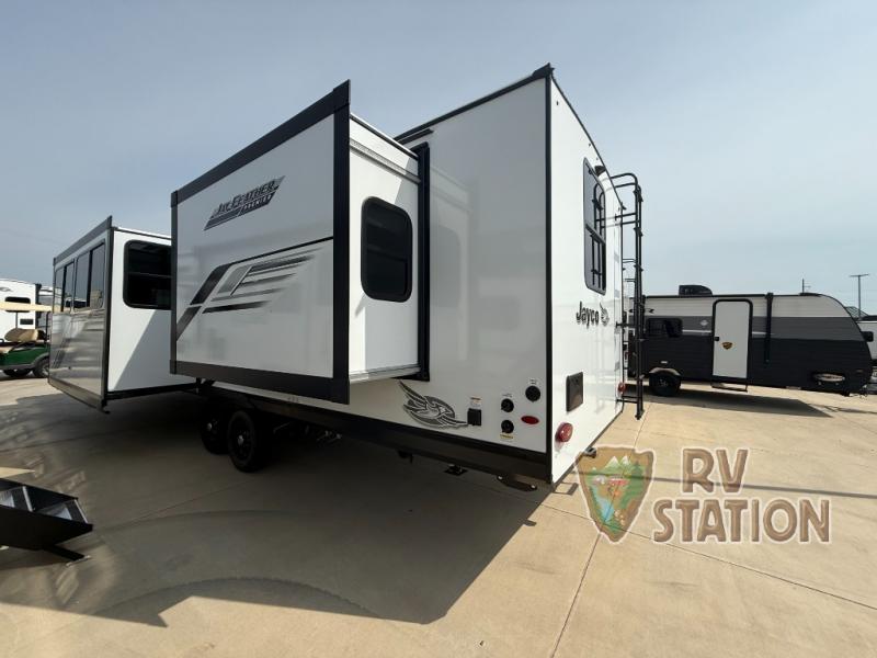 This travel trailer features two spacious slide-outs, giving you plenty of room to stretch out and relax. Whether you're lounging after a day of exploring or hosting friends at the campsite, you'll appreciate the extra space. The Jay Feather can comfortably sleep up to four people, making it ideal for small families or couples looking to hit the road. At 26 feet long, it’s the perfect size for maneuvering into those sweet camping spots without sacrificing comfort.
