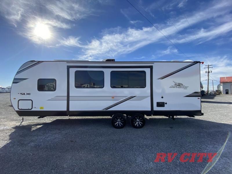 With the ability to comfortably sleep up to eight people, the Jay Flight SLX 261BHS ensures everyone has a cozy place to rest after a day of exploration. The intelligently designed floor plan includes a master bedroom, double bunk beds, and convertible dinette and sofa beds, providing versatile sleeping arrangements to suit your needs. The well-appointed kitchen features modern appliances and generous storage, allowing you to prepare delicious meals with ease, while the inviting living area is perfect for unwinding and enjoying quality time together.