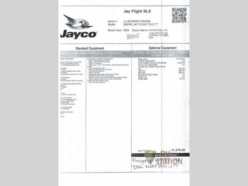 Imagine waking up in the great outdoors with all the comforts of home at your fingertips. The Jayco Jay Flight SLX 280FKS offers just that, with a layout that maximizes space and functionality. Whether you're cooking up a meal in the well-equipped kitchen or lounging in the living area, this travel trailer ensures you travel in style and comfort. Ready to hit the road? This Jayco is ready to take you wherever your heart desires!