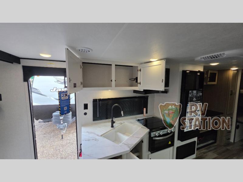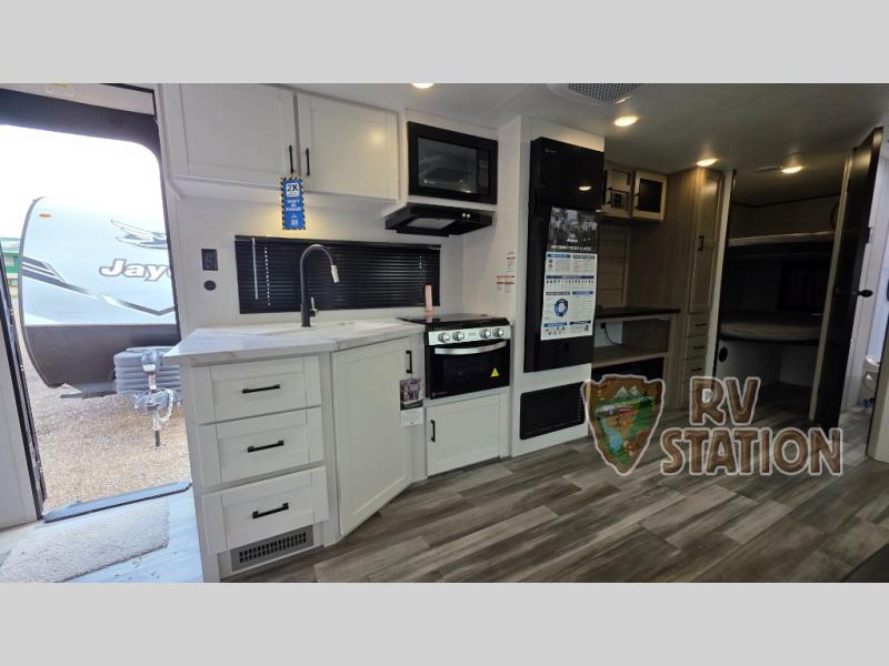 The Jay Flight SLX 284BHS features a single slide-out that expands your living area, ensuring a comfortable and inviting atmosphere. With the ability to sleep up to 9 people, this RV is ideal for family vacations or group getaways. The well-designed interior includes a cozy master bedroom, double bunk beds, and convertible seating areas, ensuring everyone has a comfortable place to rest after a day of adventure.