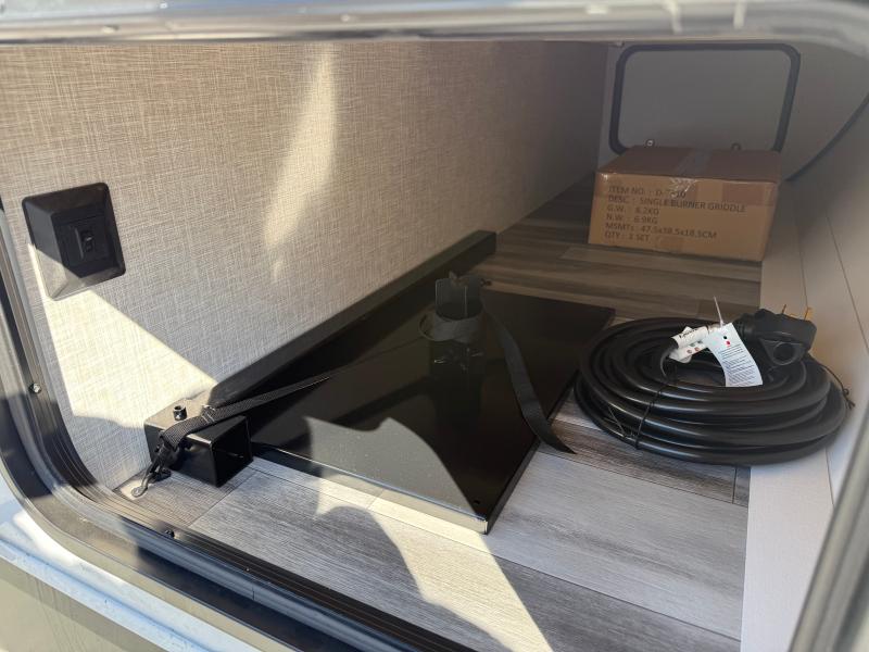 Step inside to discover a spacious and thoughtfully designed interior that caters to all your needs. The living area is adorned with plush seating, ensuring relaxation after a day of adventure. The well-appointed kitchen features state-of-the-art appliances, including a refrigerator, microwave, and stove, all designed to make meal preparation a breeze. Ample storage solutions are seamlessly integrated throughout the trailer, allowing you to bring along all your essentials without compromise. The elegant dining area provides a cozy space for family meals or entertaining guests, while large windows invite natural light, creating a warm and inviting atmosphere.