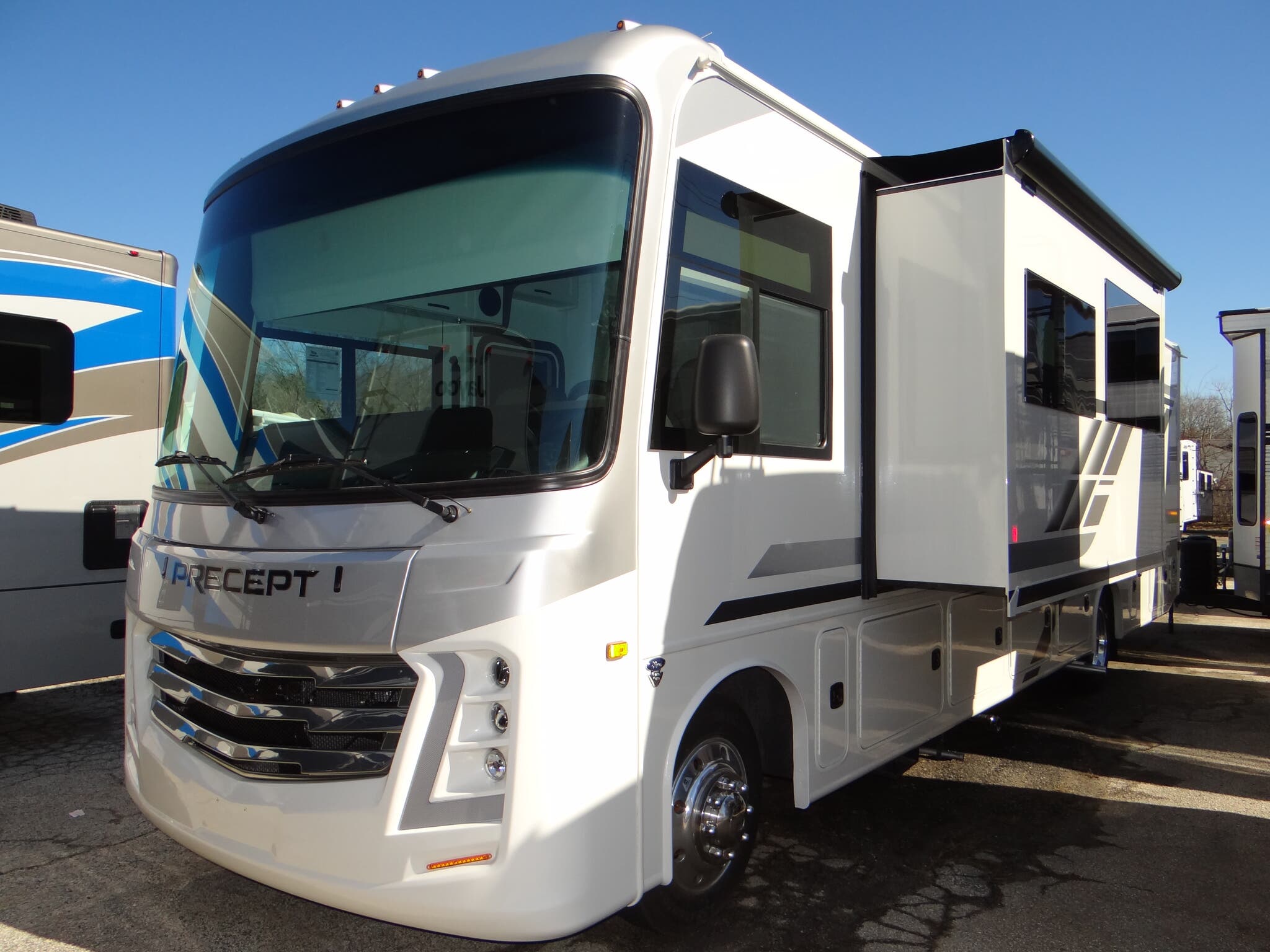 This beauty comes with two slide-outs, giving you extra room to stretch out and relax. Whether you're planning a weekend getaway or a cross-country road trip, the Precept 34G has got you covered. It can comfortably sleep up to 8 people, making it ideal for family trips or a fun outing with friends. The interior is thoughtfully designed with cozy sleeping arrangements, a fully-equipped kitchen, and a spacious living area to make you feel right at home.