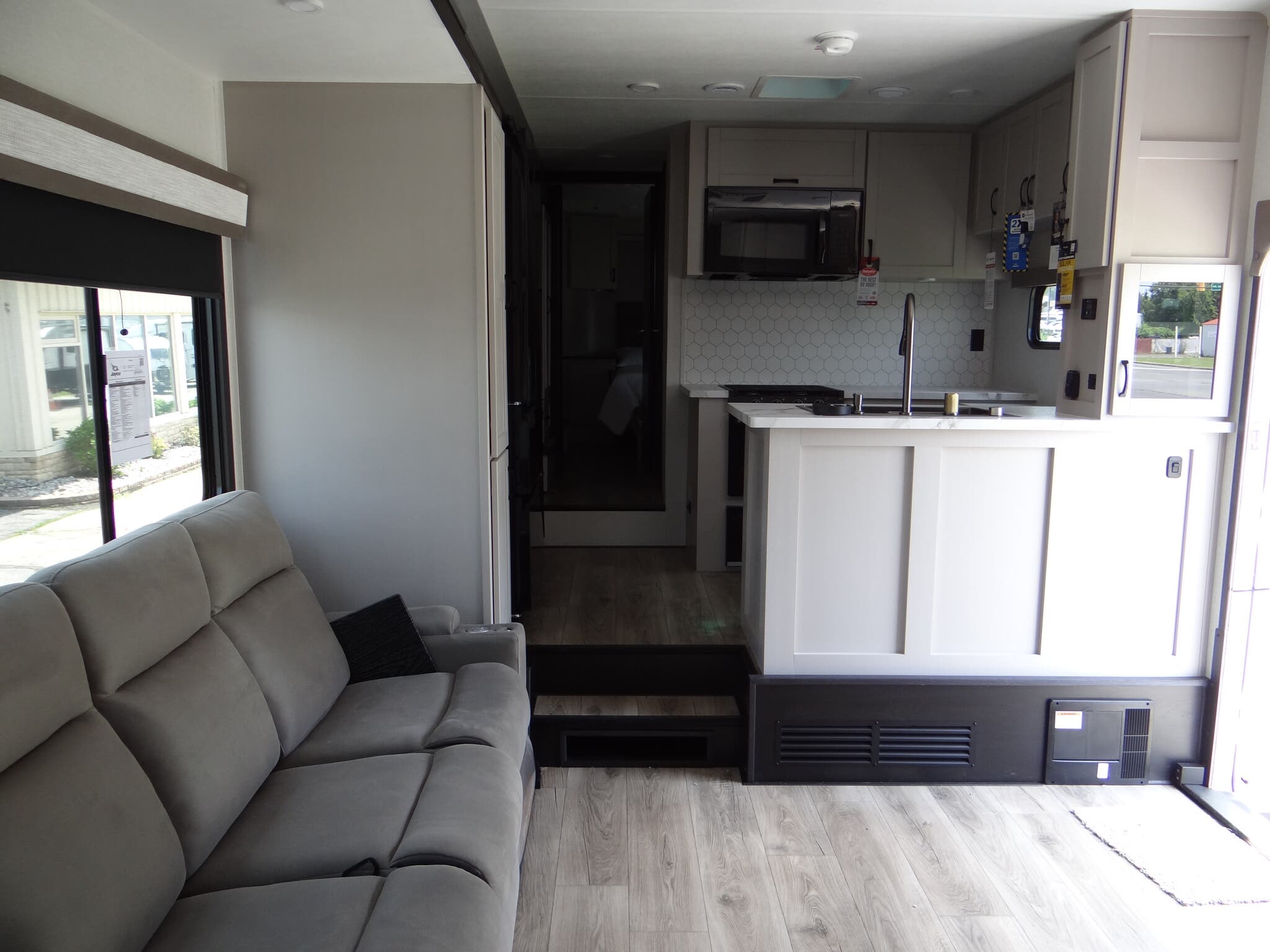 Step inside to experience the expansive living space, enhanced by two slide-outs that create a roomy and inviting atmosphere. The modern interior is thoughtfully designed with high-quality finishes and amenities that cater to your every need. Imagine enjoying your morning coffee on one of the two patio decks, with the side and rear options providing versatile outdoor spaces for relaxation or entertainment. The Seismic 413 is not just about luxury; it's about creating memories with family and friends, whether you're parked by a tranquil lake or nestled in a forest.