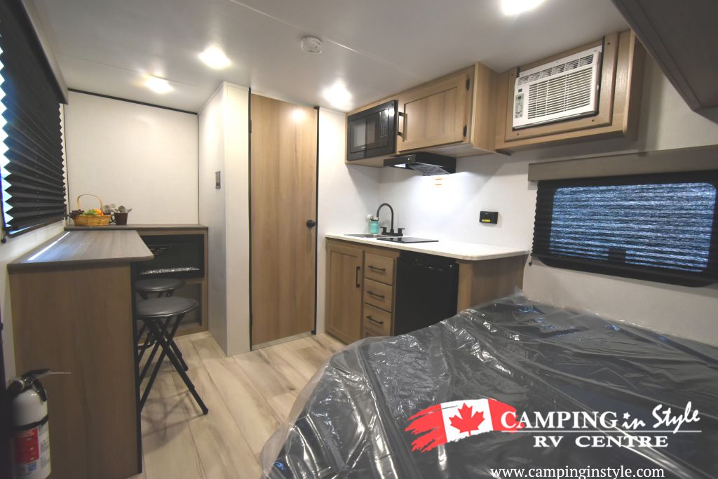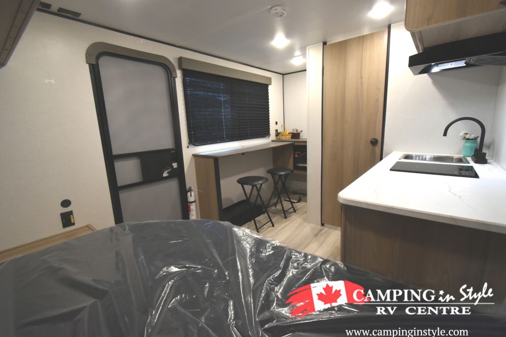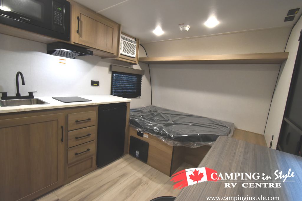 Inside, you’ll find a thoughtfully designed space that maximizes comfort and functionality. The Coleman 13R comfortably sleeps two, offering a cozy retreat after a day of adventure. The interior is equipped with all the essentials you need for a comfortable stay, including a compact kitchenette, a dining area, and ample storage space for all your travel necessities. The efficient layout ensures that every inch of space is utilized, providing you with a practical and inviting environment to relax and unwind.