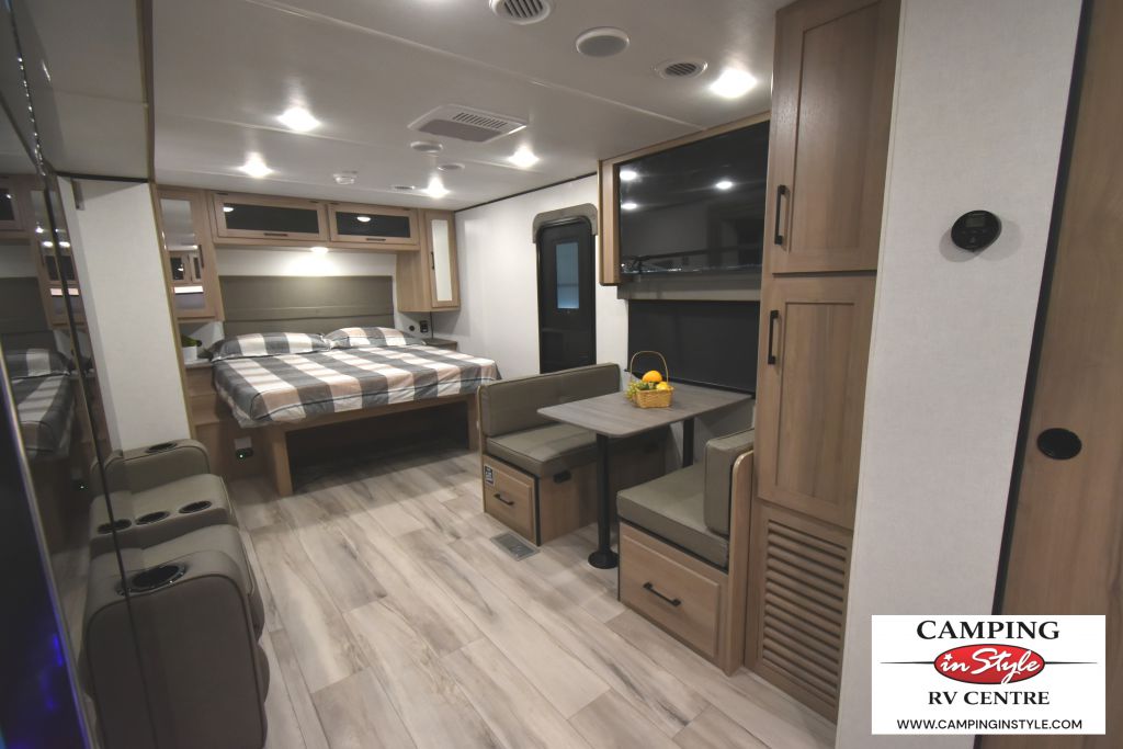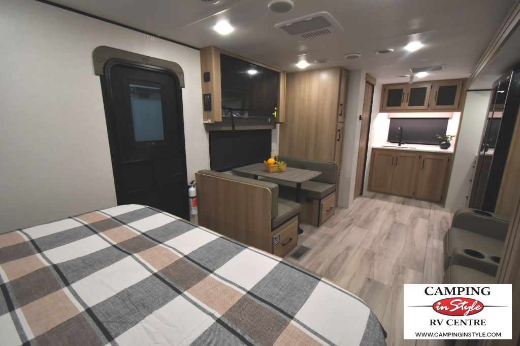 Step inside, and you'll be greeted by a thoughtfully designed interior that can comfortably sleep up to five people. Whether you're traveling with family or friends, everyone will find their cozy spot to relax after a day of exploration. The single slide-out expands the living area, providing extra room to stretch out and enjoy your time indoors. The well-equipped kitchen, complete with modern appliances, ensures you can whip up your favorite meals no matter where your adventures take you.