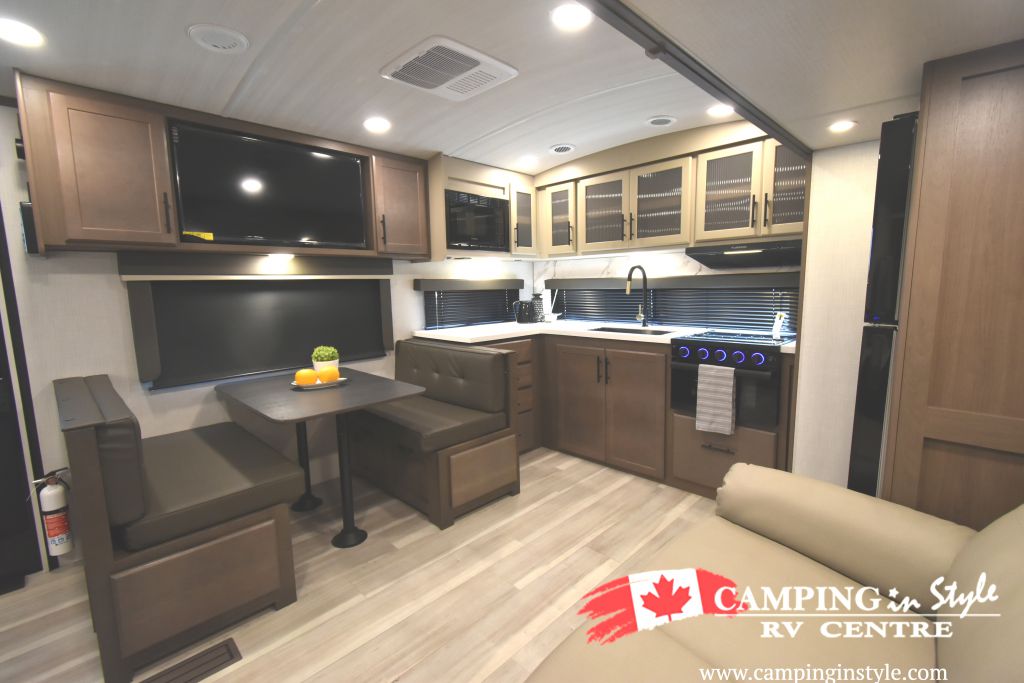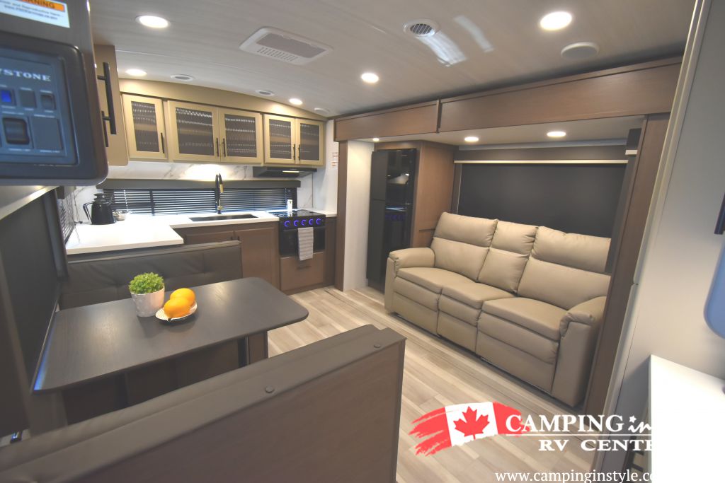 Step inside and be greeted by a thoughtfully designed interior that can comfortably sleep up to four people. Whether you're planning a romantic getaway or a family adventure, the Cougar 25MLE has you covered. The single slide-out expands your living space, providing ample room for relaxation and entertainment. The well-equipped kitchen, complete with modern appliances, makes meal preparation a breeze, while the inviting dining area is perfect for sharing stories over dinner.