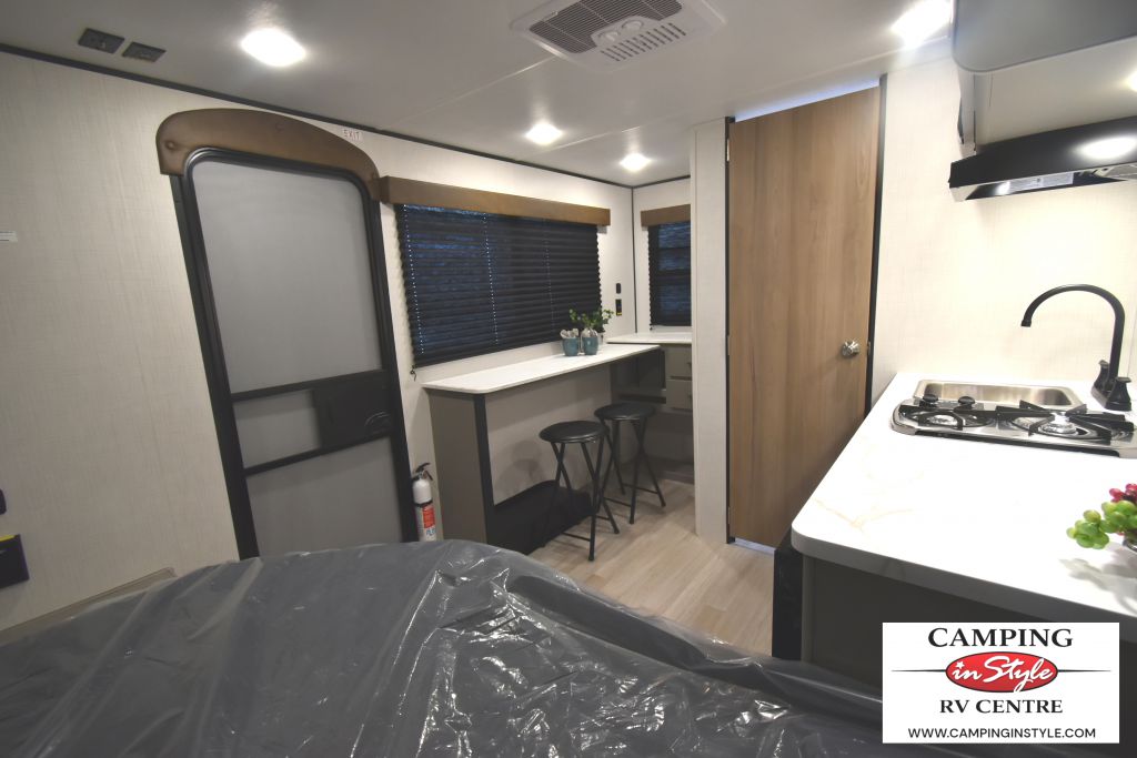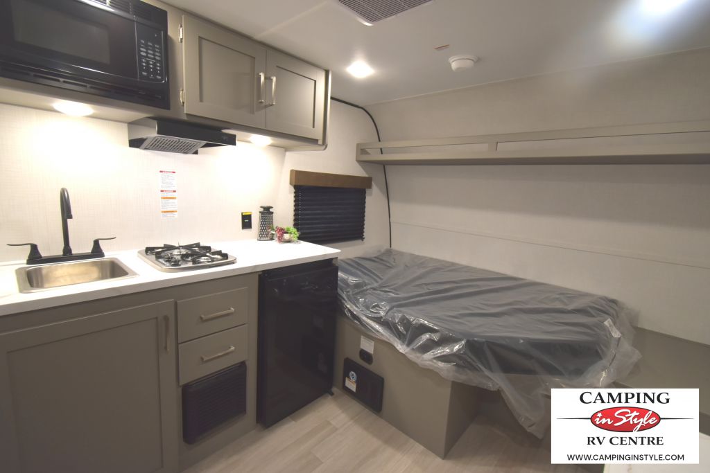 Weighing in at a manageable 1,194 kilograms, this travel trailer is crafted to ensure stability and safety on the road. Despite its compact size, the Hideout Mini 120BT offers a well-thought-out interior that maximizes space and functionality. It comfortably sleeps two, providing a cozy retreat after a day of exploration. The interior is designed with modern amenities and high-quality finishes, ensuring that you have all the comforts of home while on the go.