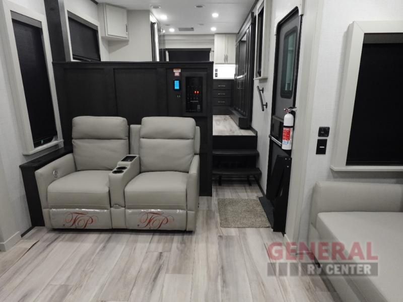 Measuring approximately 34 feet in length, the Alpine 3820FK provides a generous living space that feels more like a cozy home than an RV. The thoughtfully designed interior features a front kitchen layout, perfect for those who love to cook on the road. You'll find modern appliances, plenty of counter space, and abundant storage, making meal prep a breeze. The inviting living area is perfect for relaxing after a day of adventure, with plush seating and entertainment options to keep everyone entertained.