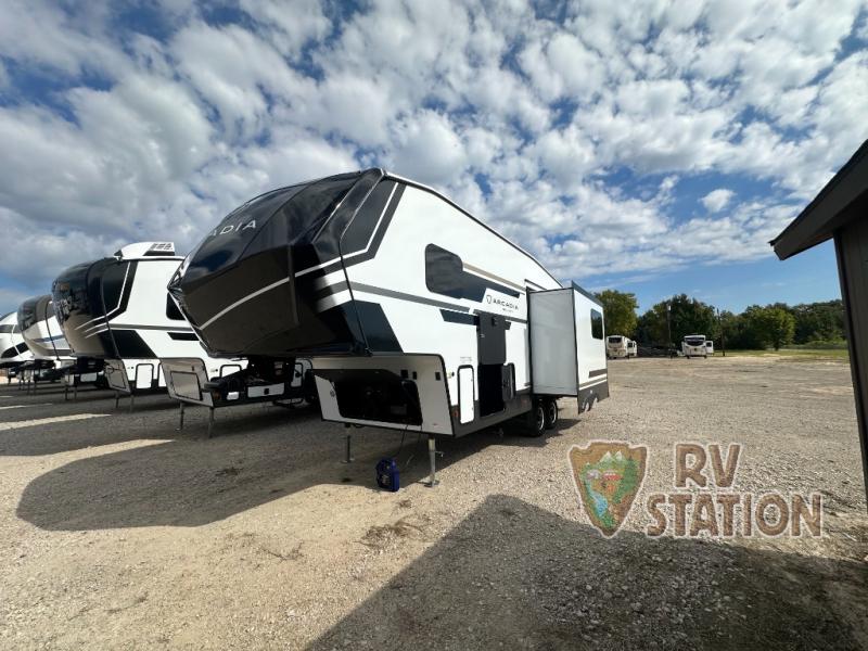 Introducing the 2026 Keystone RV Arcadia Select 25SRD Fifth Wheel, a meticulously crafted mobile haven designed for those who seek both adventure and comfort. This premium RV offers a perfect blend of functionality and style, making it an ideal choice for families or groups looking to explore the great outdoors without sacrificing the comforts of home. With a single slide-out, this model maximizes interior space, providing ample room for relaxation and entertainment.