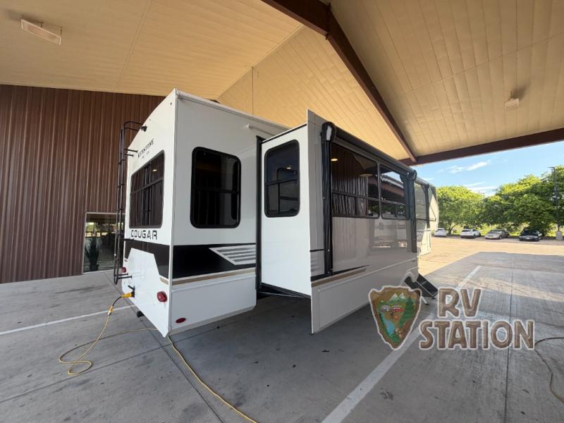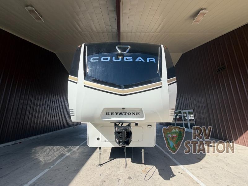Introducing the 2026 Keystone RV Cougar 355FBS Fifth Wheel, a perfect blend of comfort and functionality for your next adventure. This spacious RV features three slide-outs, providing ample room for relaxation and entertainment. With a length of 33 feet, it offers a generous living space while maintaining easy maneuverability on the road. Designed to accommodate up to five people, this RV is ideal for family trips or a getaway with friends.