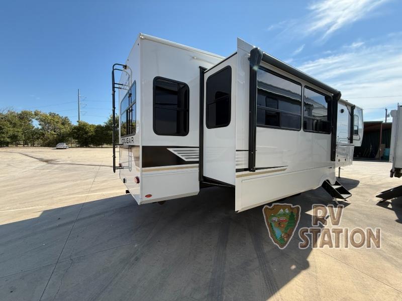 This fifth wheel features four expansive slide-outs, maximizing the interior living area and creating a truly open and inviting atmosphere. The Cougar 360MBI can comfortably sleep up to nine people, making it an ideal choice for large families or groups of friends. The thoughtfully designed floor plan includes a master bedroom, a cozy bunkhouse, and additional sleeping options in the living area, ensuring everyone has a comfortable place to rest.