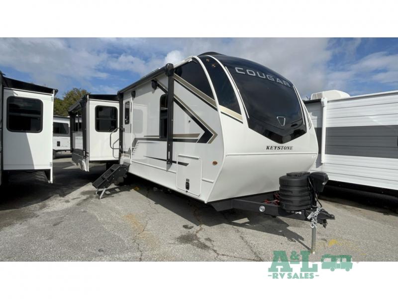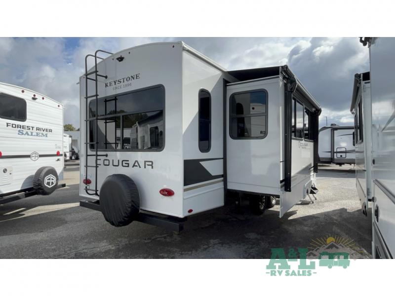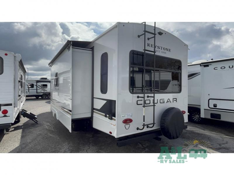 The Cougar 29RLP is engineered to accommodate up to four individuals, making it an ideal choice for families or couples seeking a luxurious camping experience. The intelligently designed floor plan includes a well-appointed kitchen, a cozy dining area, and a relaxing living space, all crafted with high-quality materials and finishes. The sleeping arrangements are thoughtfully configured to ensure restful nights, featuring a comfortable master bedroom and additional sleeping options in the living area.