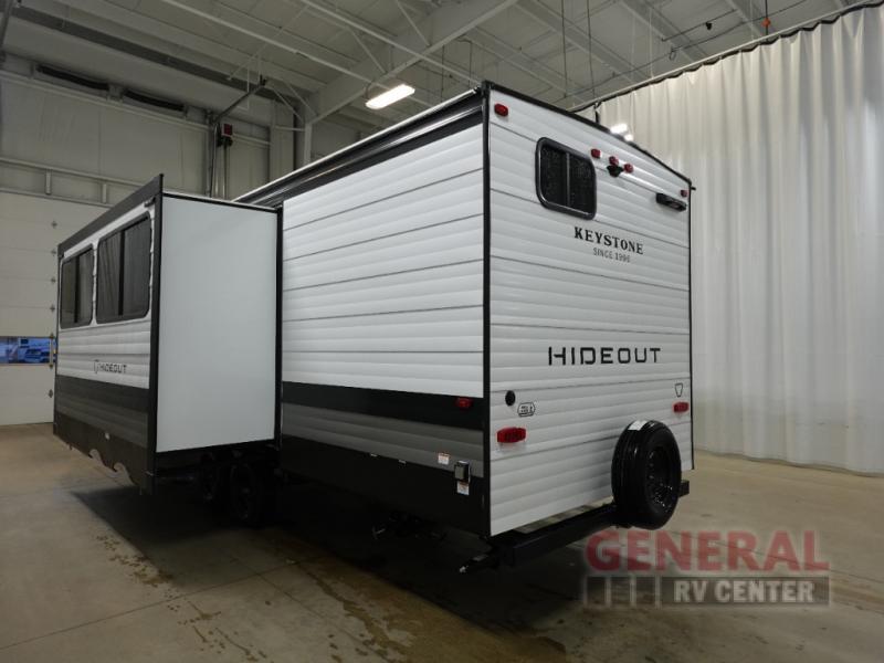The Hideout Sport 261BH features one slide-out, which expands your living area to provide extra room for relaxation and entertainment. Inside, you'll find a well-appointed interior with modern amenities to enhance your camping experience. The kitchen is equipped with essential appliances, allowing you to prepare meals just like at home. The cozy sleeping quarters include a master bedroom and bunk beds, ensuring everyone has a comfortable place to rest after a day of adventure.