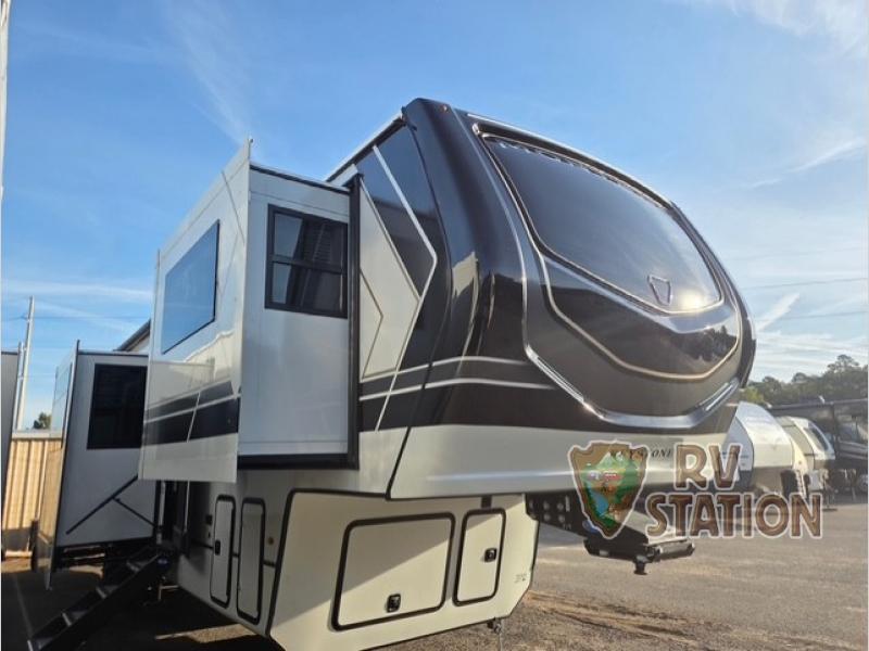 The Montana 3761FL features five slide-outs, which significantly enhance the living space, providing a roomy and comfortable environment. The intelligent design ensures that every inch of its 6,788-kilogram frame is utilized efficiently, offering a spacious interior that includes a well-appointed kitchen, a cozy living area, and a luxurious sleeping arrangement. The front living room layout is perfect for socializing, featuring plush seating and state-of-the-art entertainment options, while the rear master suite offers a serene retreat after a day of adventure.