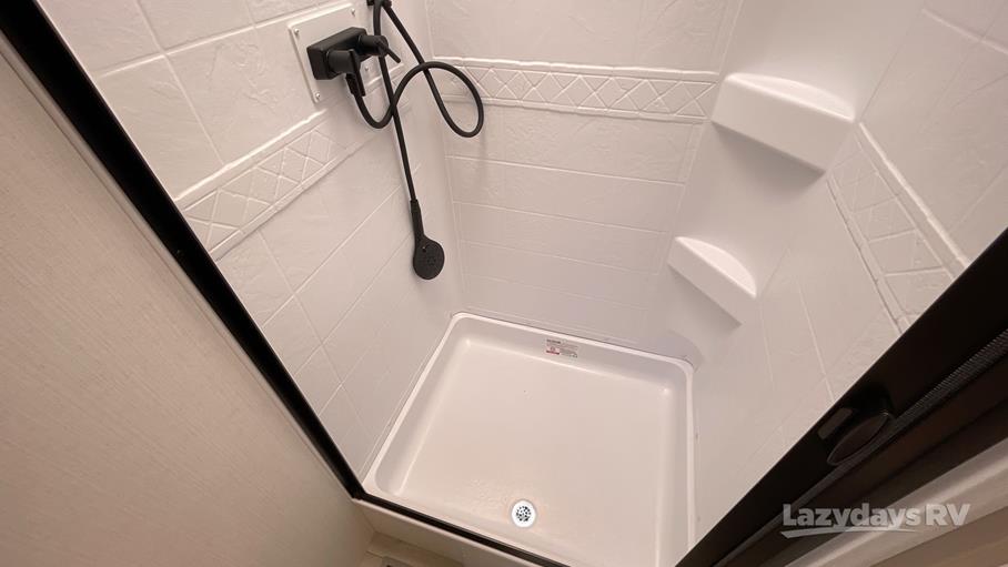 Step inside, and you'll find a cozy and well-thought-out interior. The living area is perfect for unwinding, with comfy seating and a modern entertainment setup. The kitchen is equipped with all the essentials, so you can whip up your favorite meals on the go. Whether you're planning a weekend getaway or a cross-country journey, this travel trailer has got you covered. The bedroom offers a peaceful retreat with ample storage for all your gear, ensuring you have everything you need right at your fingertips.