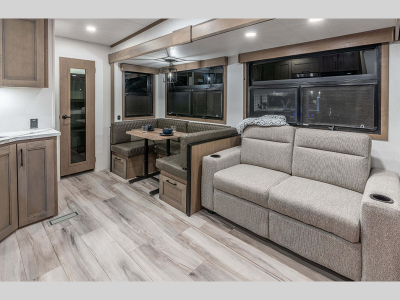 This beauty features three slide-outs, giving you plenty of room to stretch out and relax. Whether you're on a weekend getaway or an extended road trip, you'll appreciate the thoughtful layout that can comfortably sleep up to seven people. The interior is designed with family and friends in mind, offering cozy sleeping arrangements and a welcoming atmosphere. Imagine gathering around the dining area for meals or enjoying a movie night in the living space after a day of exploring.