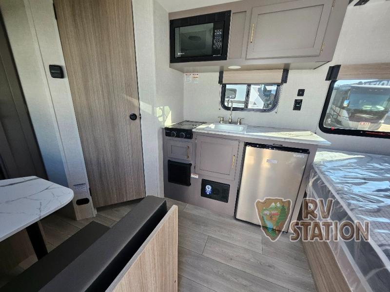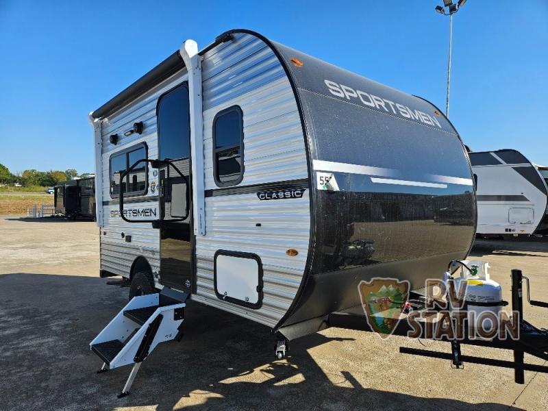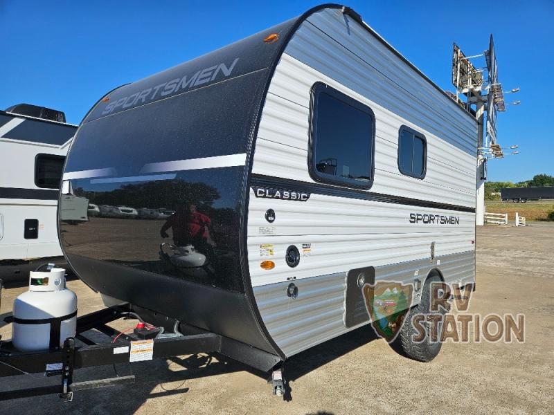 Inside, the Sportsmen Classic 130RD offers a cozy retreat that comfortably sleeps up to three people. Whether you're planning a solo adventure, a romantic getaway, or a small family trip, this travel trailer provides the perfect space to unwind after a day of exploration. The thoughtfully designed interior maximizes every inch, featuring a comfortable sleeping area, a compact yet functional kitchenette, and a cozy dining space that doubles as an additional sleeping area.