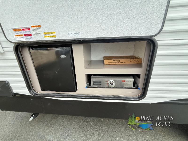 The KZ Sportsmen SE 291BHKSE features a well-designed layout that includes one slide-out, providing additional living space when parked. The interior is thoughtfully arranged with corner bunk beds, making it ideal for families with children or groups of friends. The sleeping arrangements are versatile, ensuring everyone has a comfortable place to rest after a day of exploration. The trailer is equipped with a fully functional kitchen, complete with modern appliances, allowing you to prepare meals with ease. The dining area is both practical and inviting, perfect for family meals or game nights.