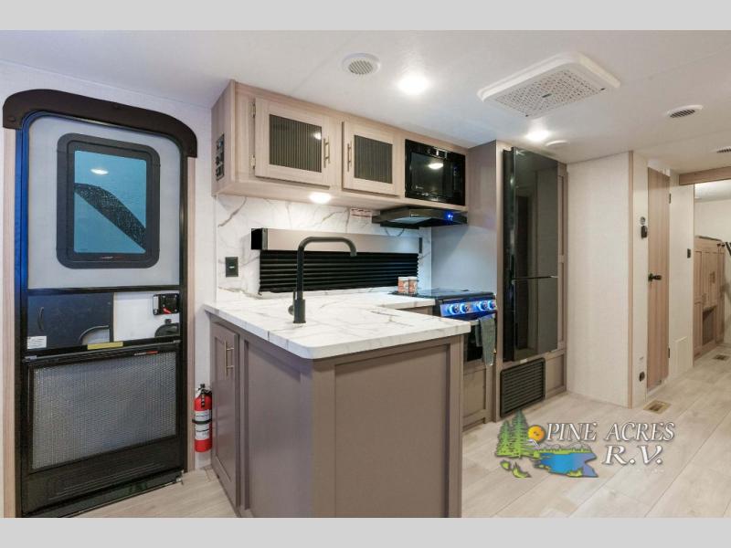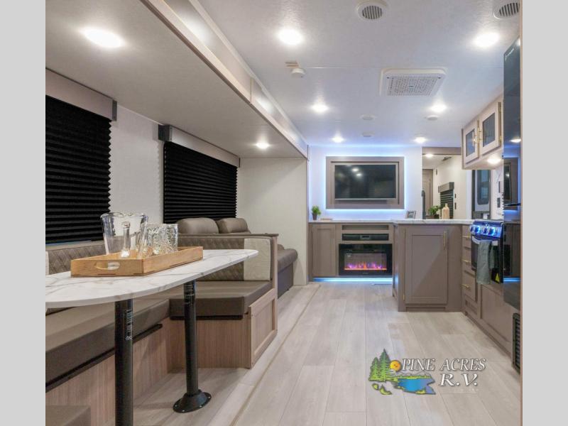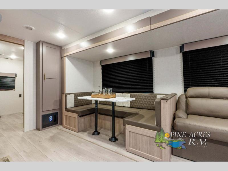 Inside, you'll find accommodations to sleep up to eight people comfortably, ensuring everyone has their own space to unwind after a day of adventure. The intelligently designed layout includes a master bedroom, a cozy bunkhouse, and convertible sleeping areas, making it versatile for any travel scenario. The interior is thoughtfully appointed with modern amenities and stylish finishes, creating a welcoming atmosphere that feels like a home away from home.