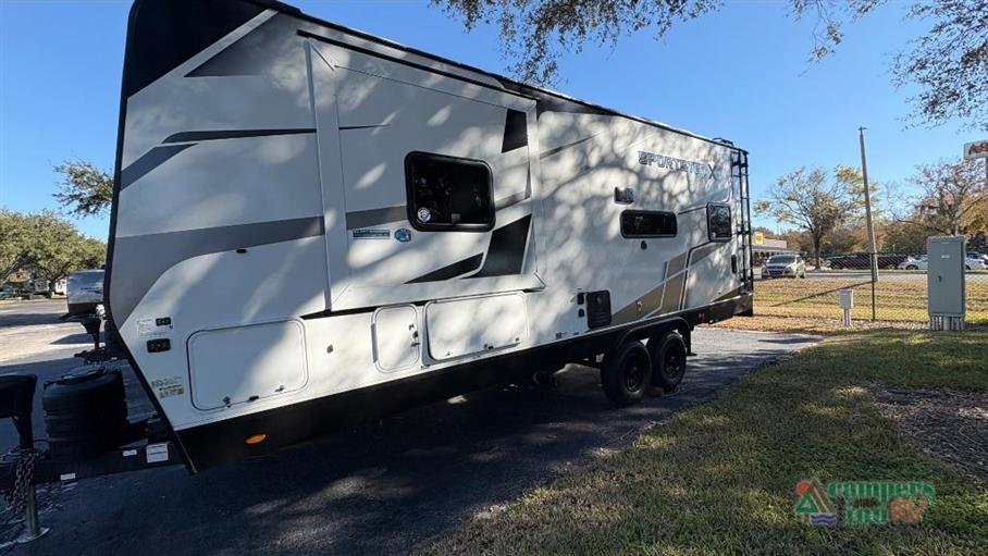 Introducing the 2026 KZ Sportster X 22X Travel Trailer, the perfect companion for your next adventure. This versatile travel trailer is designed to comfortably accommodate up to six people, making it ideal for family trips or group outings. With a single slide-out, the interior space is maximized, providing ample room for relaxation and entertainment. The Sportster X 22X combines functionality with style, ensuring you travel in comfort without compromising on aesthetics.