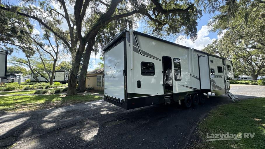 The KZ Sportster X 3914X features a cleverly designed slide-out that expands your living area, creating a roomy and inviting atmosphere for relaxation and entertainment. Accommodating up to 8 people, this RV ensures everyone has a comfortable place to rest after a day of adventure. The thoughtfully designed interior boasts modern amenities and high-quality finishes, providing a homey feel while you're on the road. Whether you're embarking on a weekend getaway or an extended road trip, this RV is equipped to meet all your needs.