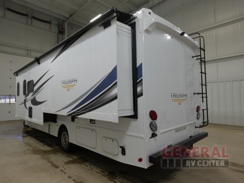 The Triumph 30T features a single slide-out that expands the living area, creating a generous and inviting space for relaxation and entertainment. Inside, you'll find accommodations to comfortably sleep up to seven people, making it perfect for family vacations or trips with friends. The thoughtfully designed interior includes a well-appointed kitchen, a cozy dining area, and a comfortable sleeping arrangement, ensuring that everyone has their own space to unwind and recharge.