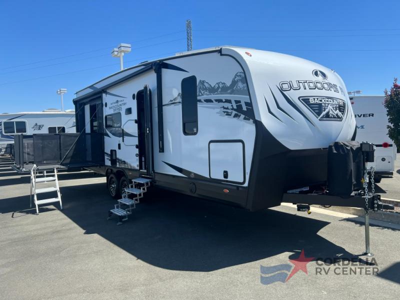 Introducing the 2026 Outdoors RV Trail Series MTN TRX 27SPS ToyHauler, a pinnacle of rugged luxury and functionality designed for the adventurous spirit. This exceptional RV is built to withstand the elements while providing unparalleled comfort and convenience. Measuring 33 feet in length, the Trail Series MTN TRX 27SPS offers ample space for both living and storage, making it the perfect companion for extended trips and off-grid adventures.