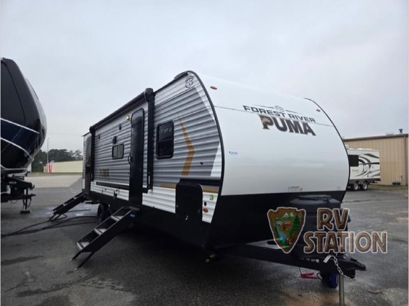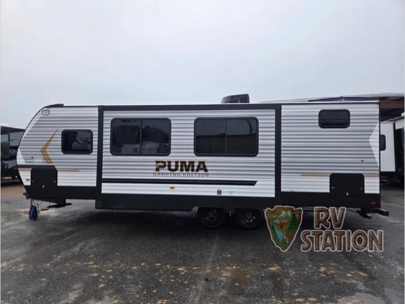 The Puma Camping Edition 284BHCE features a single slide-out, enhancing the interior space to comfortably accommodate up to eight people. This model is thoughtfully designed with a versatile floor plan, including a cozy sleeping area, a fully equipped kitchen, and a modern bathroom. The sleeping arrangements are ideal for families, with a master bedroom, bunk beds, and convertible sleeping spaces, ensuring everyone has a comfortable place to rest. The interior is adorned with high-quality finishes and modern amenities, providing a home-like atmosphere on the road.