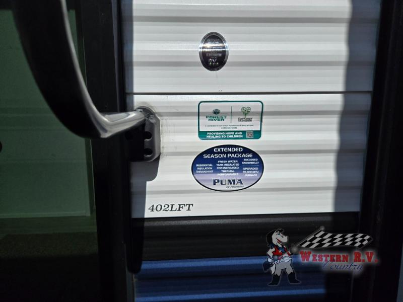 Introducing the 2026 Palomino Puma 402 LFT Park Model, a sophisticated blend of comfort and functionality designed for those who seek the ultimate in mobile living. This meticulously crafted RV spans an impressive 42 feet in length, offering ample space for both relaxation and entertainment. With a width of approximately 3 meters and a height of 4 meters, the Puma 402 LFT provides a spacious interior that feels more like a home than a vehicle.