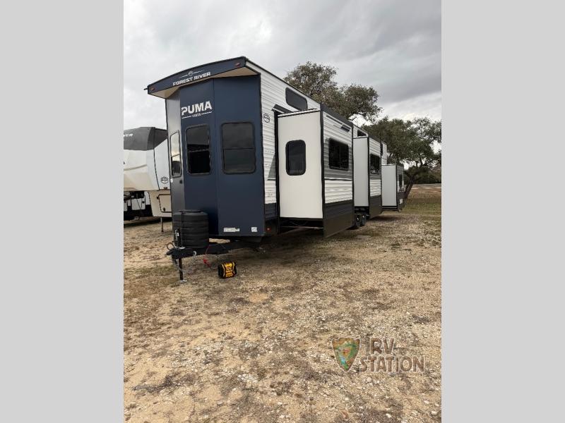 Discover the ultimate in comfort and convenience with the 2026 Palomino Puma Destination 403LFT Park Model. This spacious RV is designed to be your home away from home, offering an impressive four slide-outs that expand your living space to new dimensions. With a length of 35 feet, this model provides ample room for relaxation and entertainment, making it perfect for family adventures or extended stays.