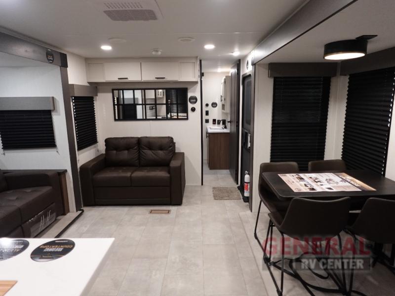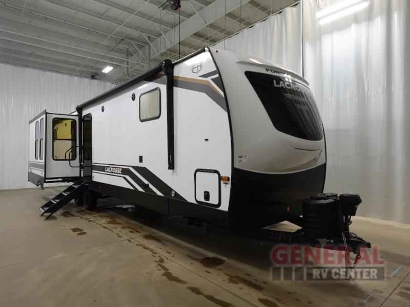 Inside, the LaCrosse 3411RK is thoughtfully designed to accommodate up to four occupants, making it ideal for small families or couples seeking a luxurious getaway. The interior layout is meticulously planned to maximize space and functionality, featuring a well-appointed kitchen, a cozy living area, and a comfortable sleeping arrangement. The kitchen is equipped with modern appliances and ample storage, allowing you to prepare meals with ease. The living area, enhanced by the slide-outs, offers a spacious environment for relaxation and entertainment.