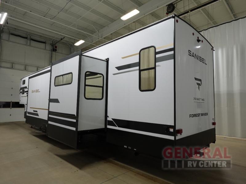 Introducing the 2026 Prime Time RV Sanibel 39BUNK Fifth Wheel, a premier choice for those seeking luxury and comfort on the road. This meticulously crafted RV features four expansive slide-outs, offering an abundance of space for both relaxation and entertainment. With a length of 36 feet, this fifth wheel is designed to provide a perfect balance of maneuverability and spaciousness, making it an ideal option for family adventures or extended road trips.