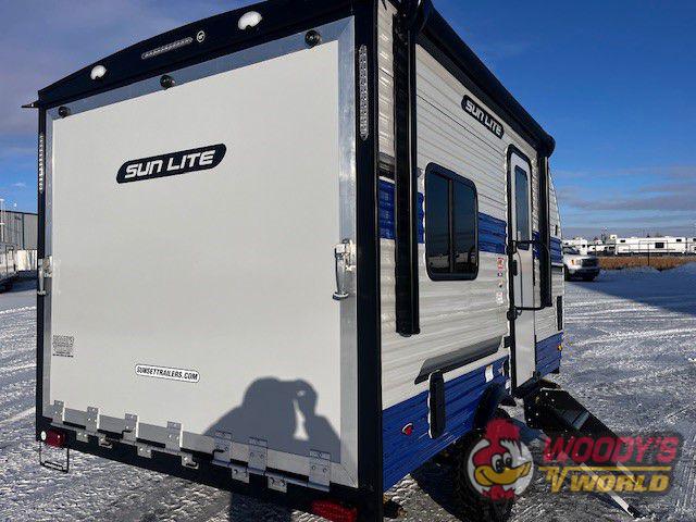 Introducing the 2026 Sunset Park RV Sun Lite 14THX ToyHauler, a perfect blend of functionality and comfort for the adventurous spirit. This compact yet versatile recreational vehicle is designed to cater to the needs of outdoor enthusiasts who seek both convenience and style. With a length of 14 feet, the Sun Lite 14THX offers a spacious interior cleverly designed to maximize utility without compromising on comfort.