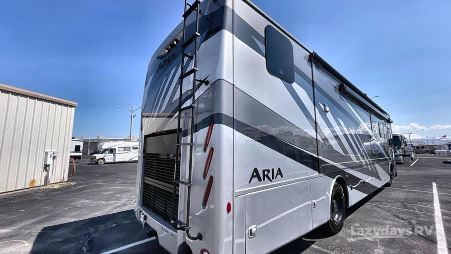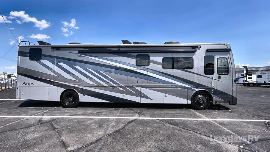 The Aria 3901 features three strategically designed slide-outs, expanding the living space to provide a truly spacious and comfortable environment. Inside, you'll find a meticulously crafted interior with high-end finishes and modern amenities. The well-appointed kitchen is equipped with top-of-the-line appliances, ensuring you have everything you need to prepare gourmet meals on the go. The living area is designed for relaxation, with plush seating and state-of-the-art entertainment options, making it an ideal space for unwinding after a day of adventure.