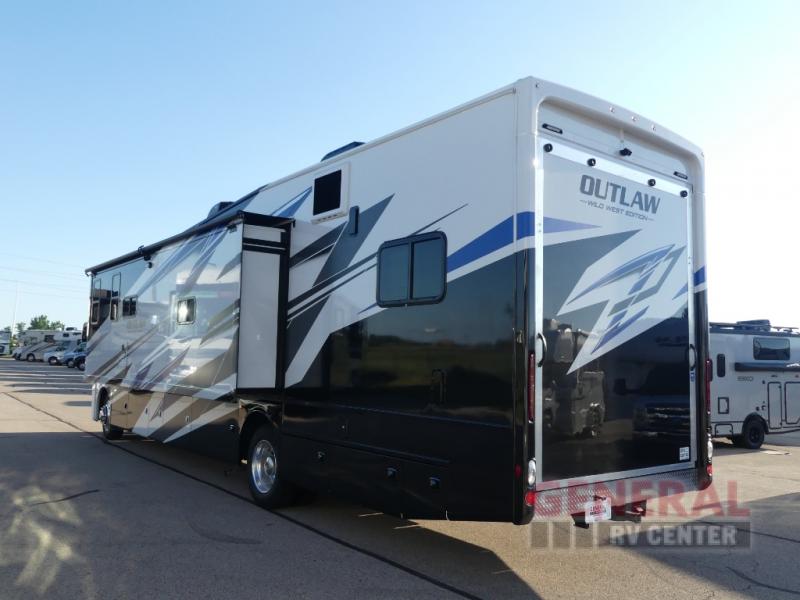 Introducing the 2026 Thor Motor Coach Outlaw Wild West Edition 38M Class A, a luxurious and versatile motorhome designed to elevate your travel experience. This exceptional RV boasts a spacious interior with two slide-outs, providing ample living space for your adventures. With a length of 33 feet, this motorhome offers a perfect balance of maneuverability and comfort, making it ideal for both short getaways and extended road trips.