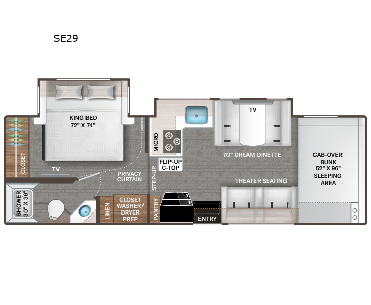 Inside, you'll find a well-equipped kitchen, a comfy living area, and plenty of storage space for all your gear. The modern amenities and thoughtful layout make it easy to enjoy life on the road. Whether you're cooking up a meal or unwinding after a day of exploring, this RV has everything you need to feel right at home. So why wait? Hit the road in style and comfort with the 2026 Thor Motor Coach Pasadena SE SE29!