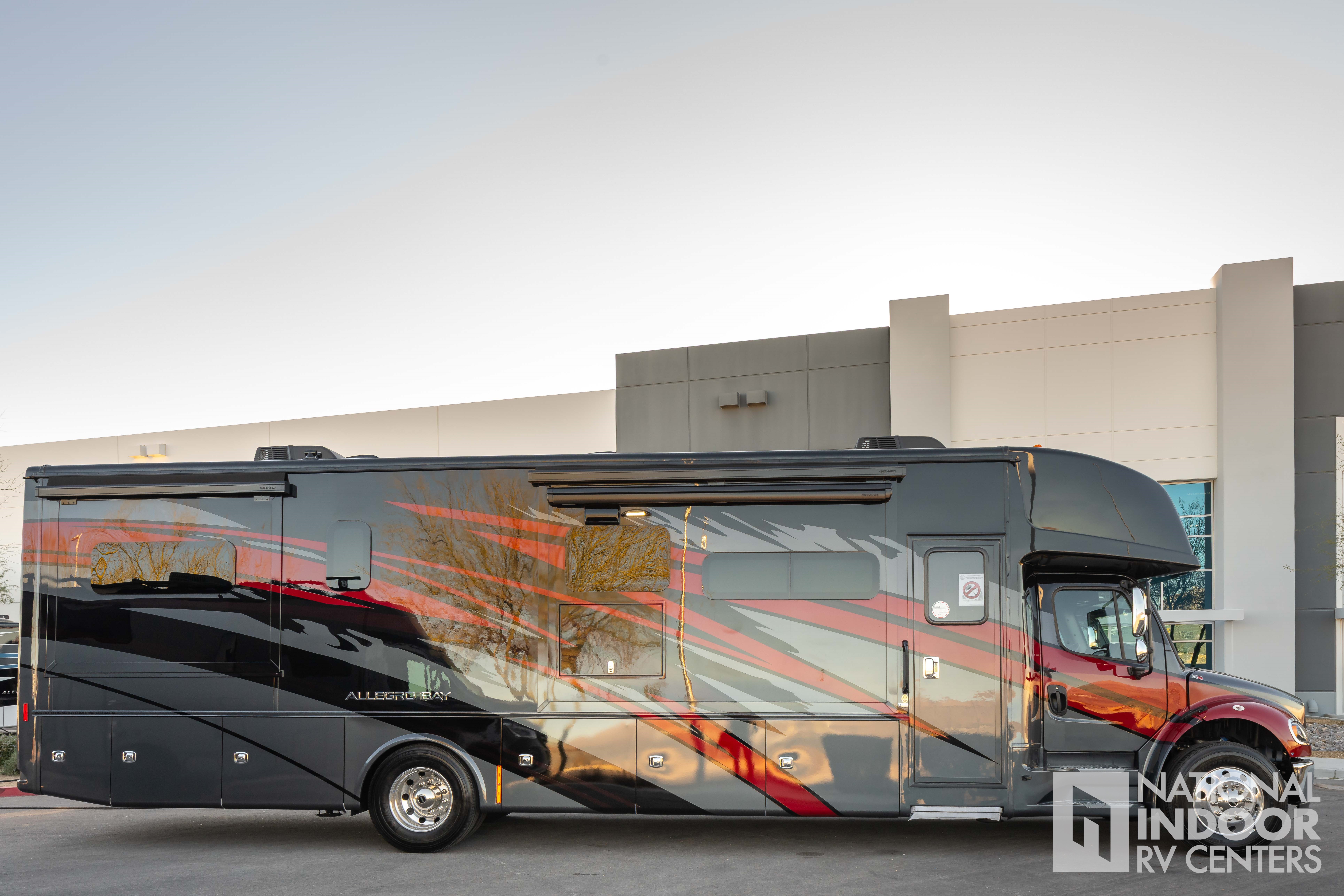 The Allegro Bay 38AB features three expertly designed slide-outs, significantly expanding the interior space to create a roomy and inviting atmosphere. Inside, you will find a sophisticated living area equipped with high-end furnishings and state-of-the-art amenities. The kitchen is a culinary enthusiast's dream, complete with modern appliances and ample storage, ensuring you have everything you need to prepare gourmet meals on the road. The sleeping quarters offer a serene retreat, with a plush bed and elegant decor, ensuring restful nights wherever your journey takes you.