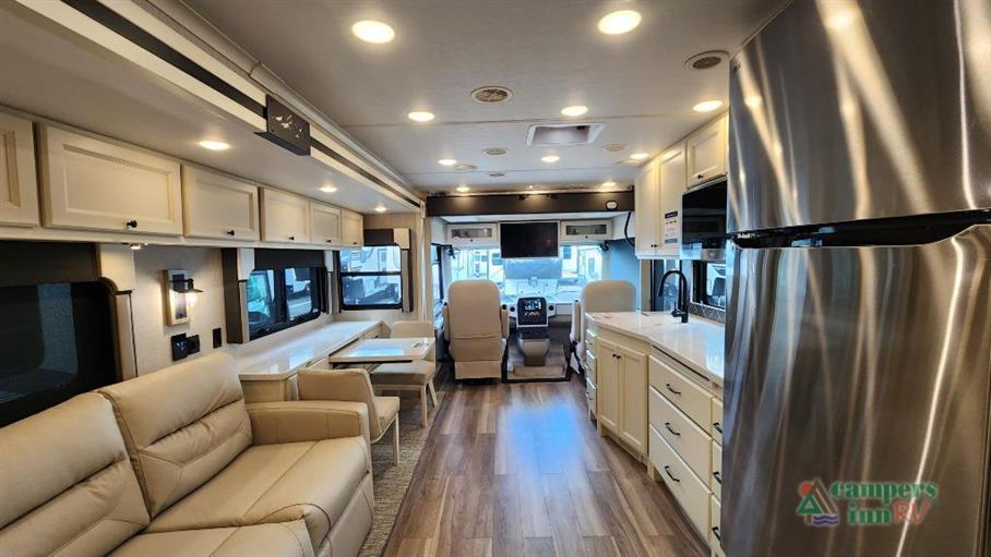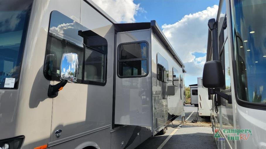 This RV is designed with convenience and luxury in mind. It features two slide-outs that expand your living space, making it feel like a cozy home away from home. Inside, you'll find comfortable sleeping arrangements for up to five people, perfect for family trips or a getaway with friends. The interior is thoughtfully designed with high-quality finishes and modern amenities, ensuring you have everything you need for a comfortable journey.