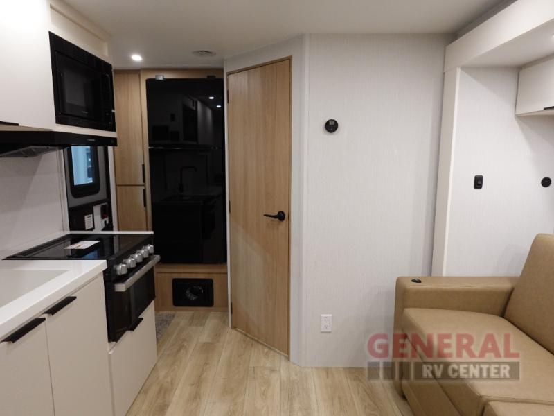 The Thrive 18FBS features one convenient slide-out, expanding your living space and providing a cozy environment for up to three people. Whether you're planning a romantic getaway or a solo retreat, this travel trailer has got you covered. Inside, you'll find a well-equipped kitchen, a comfy sleeping area, and a stylish bathroom, all designed with modern aesthetics and functionality in mind.