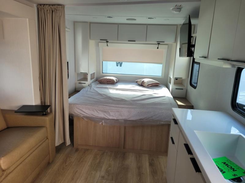Inside, the Winnebago Thrive 18FBS is thoughtfully designed to maximize space and functionality. The well-appointed interior features a cozy sleeping area, a fully equipped kitchenette with a refrigerator, stove, and microwave, and a comfortable dinette that easily converts into an additional sleeping space. The bathroom is efficiently designed with a shower, toilet, and sink, providing all the comforts of home. With ample storage throughout, you can bring along all your essentials without compromising on space.